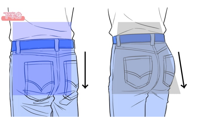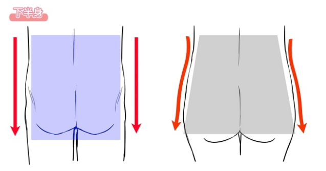 从后面看腰部,女性腰部则呈梯形弯曲的伸展轮廓,男性腰部呈直线状,伸直的长方形状,有我的意志。