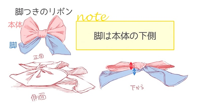 其次是带脚的丝带,描绘方法的诀窍是由于本体和脚产生高度的差异,脚在丝带本体的下侧。