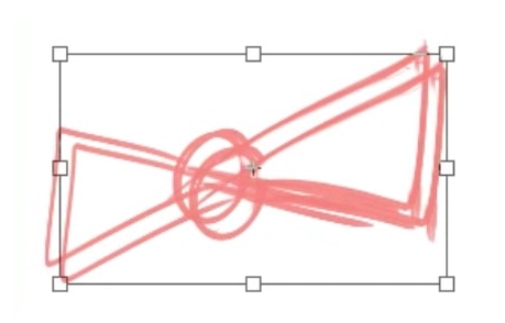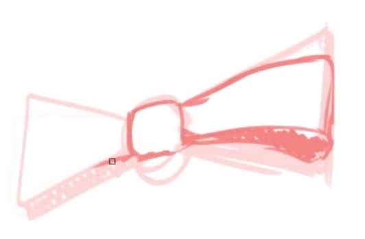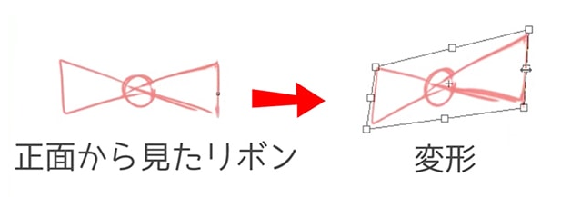 那么我实际画丝带。首先画出从正面看的简易化的缎带,通过自由变形形成角度。