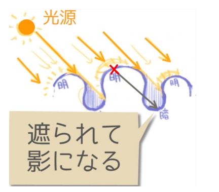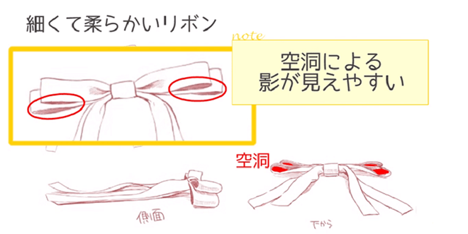 丝带上之所以会出现阴影,是因为丝带的布变高的部分会照射到光线,不会照射到变低的部分的理由。