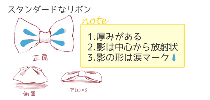 首先对最标准的丝带的描绘方法进行解说。我来说明丝带阴影的掉落方法。
