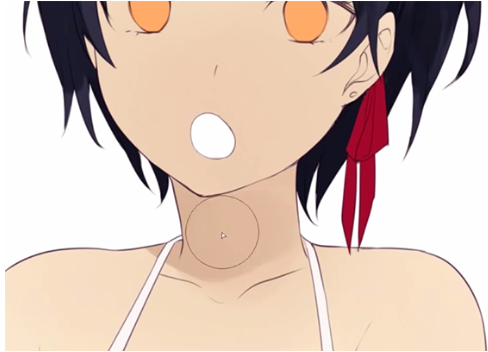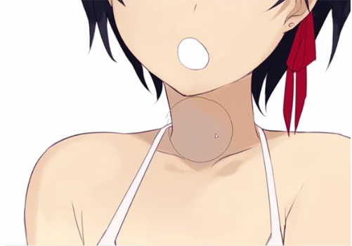 使用水彩笔牢固地遮住颈部下方的锁骨。此外,在肩部、胸部和臀部涂抹阴影颜色,但不要使阴影颜色像颈部和锁骨一样强烈,并在使用时注意柔软。