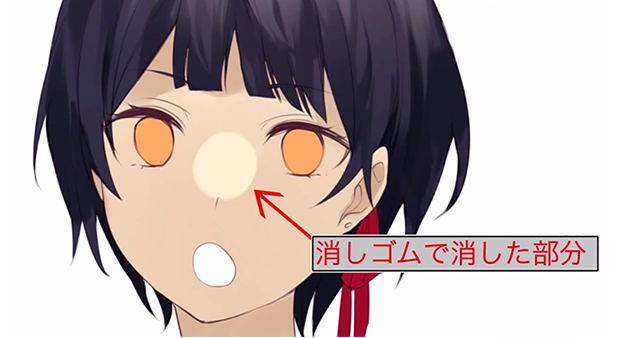 将鼻子的高光从绘图颜色切换为透明颜色,并用水彩笔将其混合。