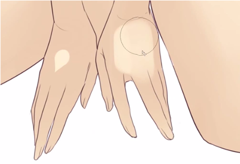 手背也是亮的部分,但是这里没有添加新的亮色,而是用橡皮擦把阴影层的手背的阴影用橡皮擦擦掉,那部分用水彩笔涂抹透明的颜色来创造一个明亮的形状。我会的。