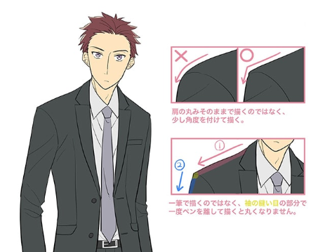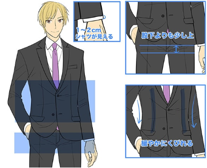 因为西装是常见的衣服,所以很容易根据记忆和印象来画,但是如果知道西装的种类、零件、道具的组合,就可以画出扎实的西装男了。