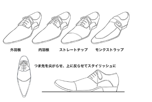此外,鞋头设计有多种类型,例如具有一条水平线的“直尖”型和脚趾上没有装饰的类型。