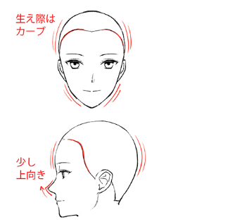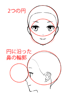 因为鼻子起伏平缓,所以从正面稍微画出鼻尖的程度。从旁边看鼻尖一下子就朝上了。