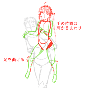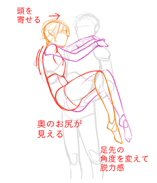被抱住的人,要先画出躯干~膝盖的雅达利,然后调节抱起的人的手到背和膝盖的背面吧。