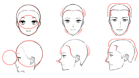 侧脸,额头和鼻子的轮廓巨大的圆两个划一样的形状画出来比较好吧。