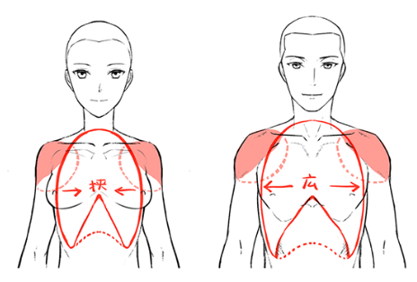 男女的肩膀都穿在身体上,随着肋骨(身体)变大,肩膀也会变宽。