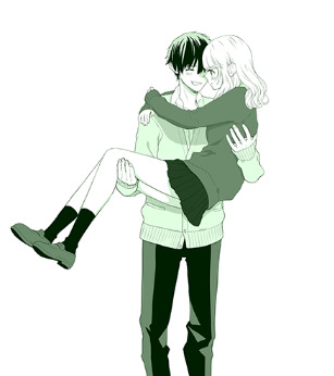 我个人认为最重要的一点是在两人纠缠在一起的画面中加入角色的反应。比如这幅插画中,男孩捧着太阳开心,女孩又尴尬又激动,我就带着遗憾的表情画了下来。