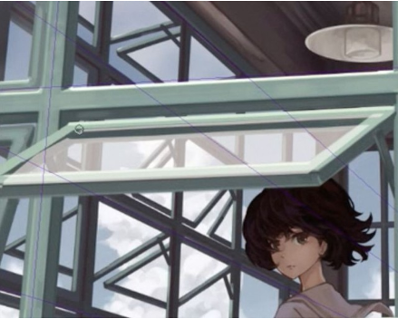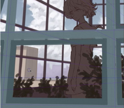 在最前面也按照珀斯绘制窗框,呈现近景、中景、远景和纵深的构图。