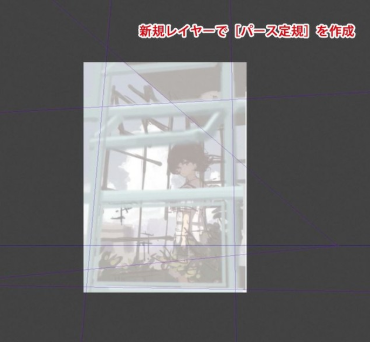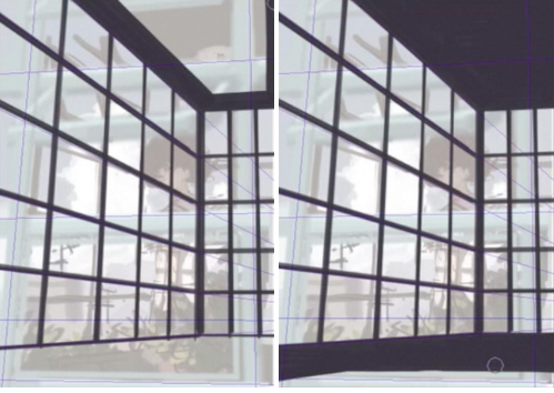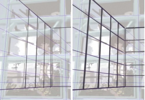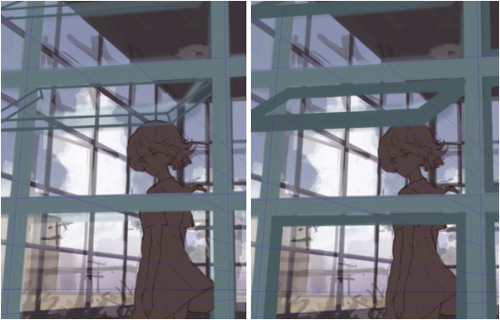 用新图层创建一个 3 点透视 [透视标尺]。将画笔与此标尺对齐并绘制前面房间的窗框。