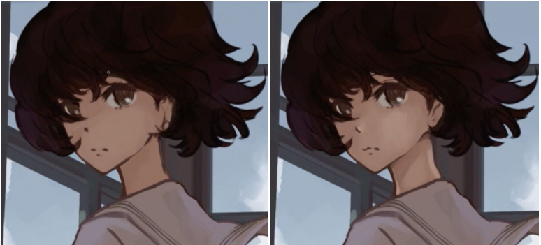 对轮廓和脸部的头发进行微调后,进入脸部的描绘。