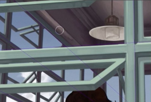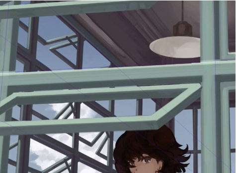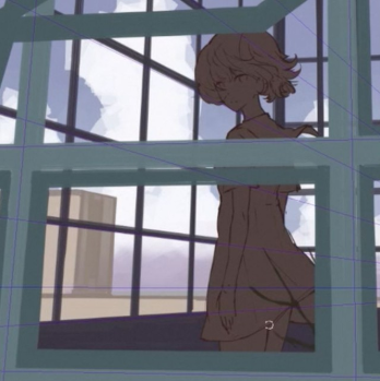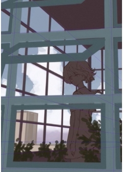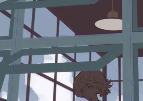 在它前面,画一个建筑物作为中间地带。也是这个时候,我把它贴到了我之前提到的【透视尺】上。