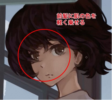 如果均匀涂抹的话会损害质感,所以用厚涂刷微妙地改变笔压的同时,要注意保持适度的笔划。