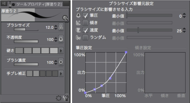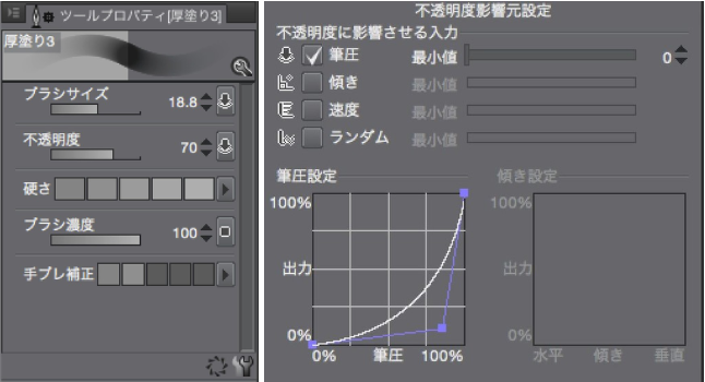 Ver.1.6.0现在可以通过书写压力调整不透明度,以便更好地绘制更厚的画法(如图1所示)。