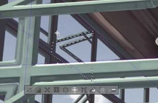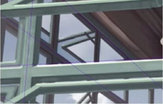 在前景中绘制一个窗框并添加它。对于斜开的窗口,取消【标尺捕捉】,用【直线工具】绘制。