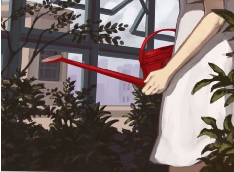 喷壶完成后,人物的画就暂时完成了。
