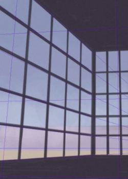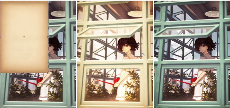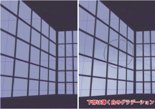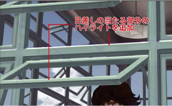 在面向阳光直射的玻璃上,再重叠屏幕图层来表现阳光。