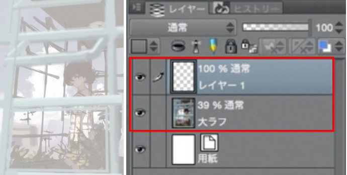 降低大粗糙图层的不透明度,并在其上创建新图层。