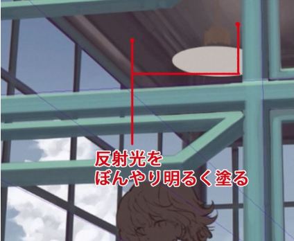 在成为阴影的面上,作为来自地板的反射光,放入稍微明亮的颜色。