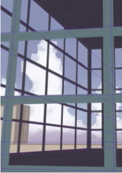 画出窗框后,用方形刷子粗略地画出云彩。