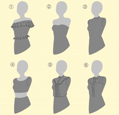 例如,服装设计可以分为这些款式。