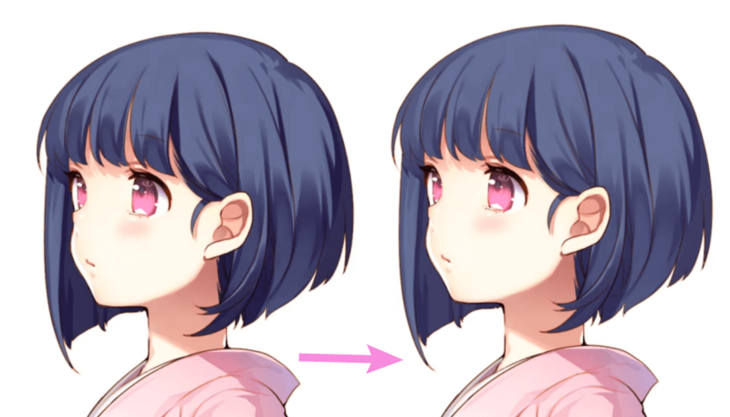 创建了“常规图层”并将其放置在线条画图层上,并对头发和高光进行了修改。这个时候画得太多的话,画的外观就会下降,所以要注意不要修改得太多了。这样就完成了。