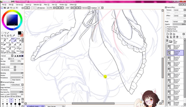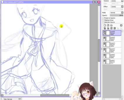 接下来,我将从粗糙的顶部画一条线图。我会画一个女孩的褶边服装。