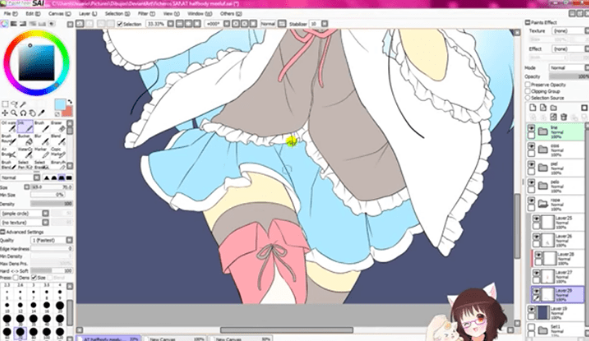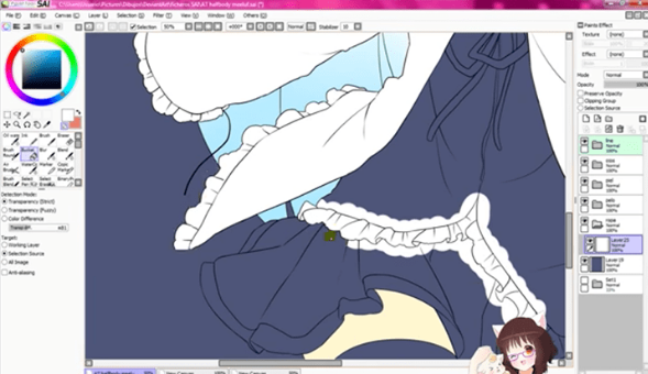 我不仅会在脸上画阴影,还会在服装上画阴影。当然,知道光的位置很重要,但是一旦习惯了,你就可以画出在哪个地方会形成什么样的阴影。这一次,装饰有点复杂,所以我会仔细地画它们。
