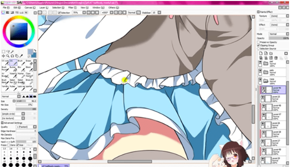 放大后是这个样子。让我们通过参考褶边的精细阴影来掌握阴影模式。注意布料的厚度,并在布料重叠的区域应用阴影。