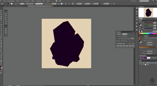 加入渐变后,接下来会呈现立体感。因为矿物有各种各样的方面,所以把那个面一个一个地画出来。每一个面都是直线的形状,所以让我们大胆地布置一个平坦的面吧。