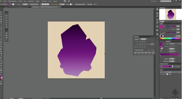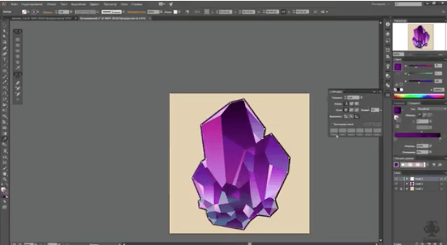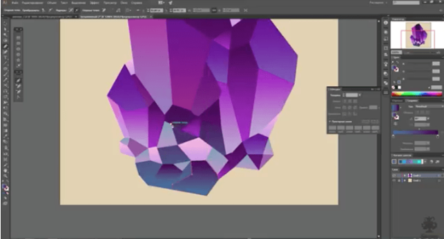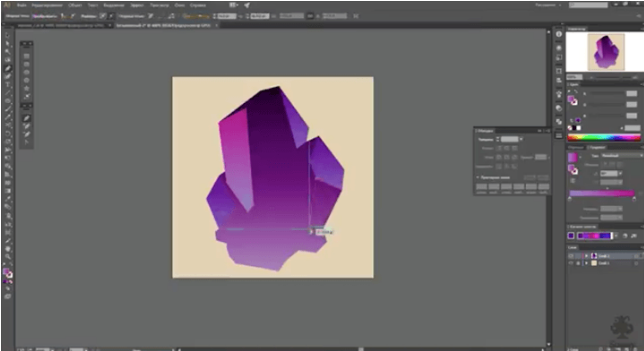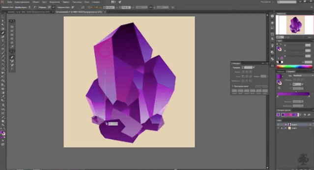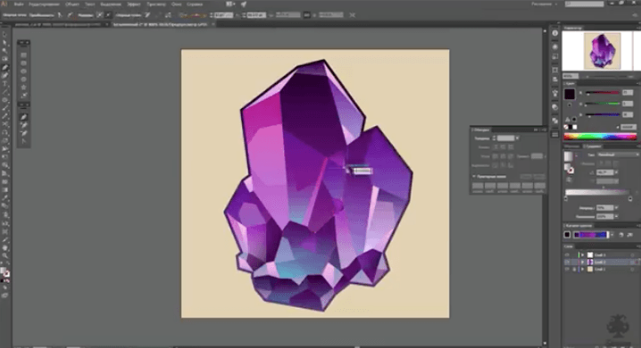 接下来,让我们在填充的范围内添加渐变。选择创建的水晶对象,然后从屏幕右侧的菜单中选择渐变。