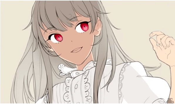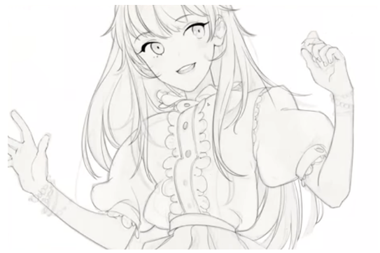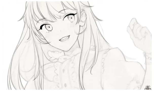 从描绘粗糙的状态开始进行笔插入,制作线条画。从角色的眼睛开始进行笔筒。