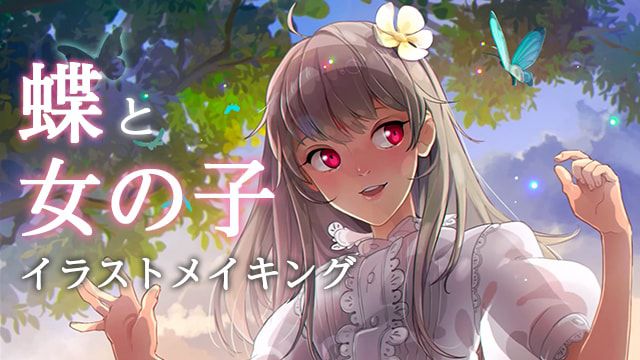 我在背景的天空中画了云。角色穿着的衣服也在不断地画进去,更能感受到透明感。