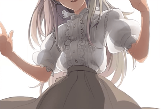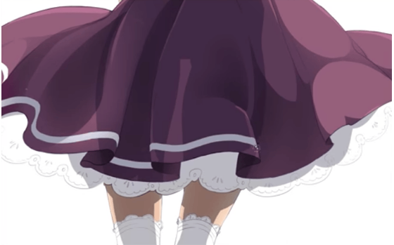 考虑到日落的方法进行绘制,就变成了这样的褶边。阴影和光线,以及裙子上描绘的线条都能很好地表现出褶边的弗利弗利感。