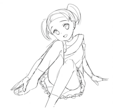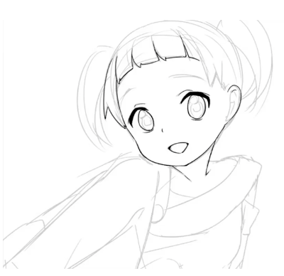 用粗糙的方式构成整体后,把表情和服装画进去,逐渐接近插图的完成形象。