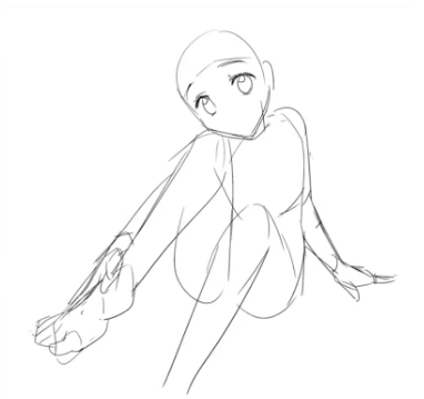 继续画脸,画整个身体,画眼睛。这次我来描绘一下少女坐着的样子。