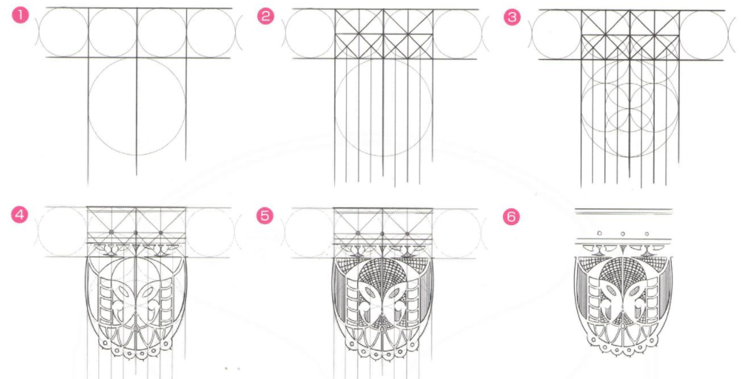 蕾丝一般以圆形和半圆形作为基调来设计。有左右对称的特点(一部分采用了植物等的花纹)和有规律的韵律美。~首先是以网格线为基准制作,使用圆和曲线来完成基本的设计结构。这一部分可以运用绘图软件中的“线对称规则”等功能来完成。~中开始加入图案设计的部分。在这里将缝合线(实际缝合了的线)的部分也画上的话之后会要省事一些。