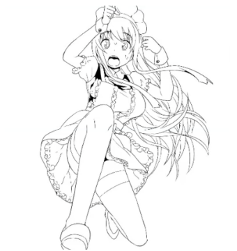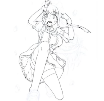 线条绘制完成后,它将是实心的(填充)。这一次,我会为女仆的女仆服添加纯色。