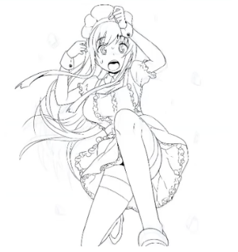 一旦你决定了你的面部表情,就该开始设计你的服装了。将绘制带有褶边的可爱女仆服。