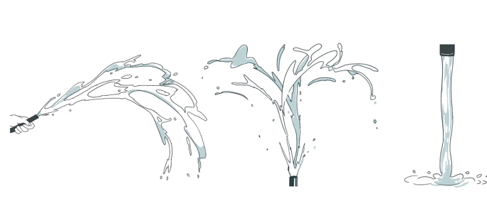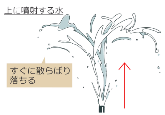 这也和向上的水一起,一开始是顺势朝上的方向直接喷射的。