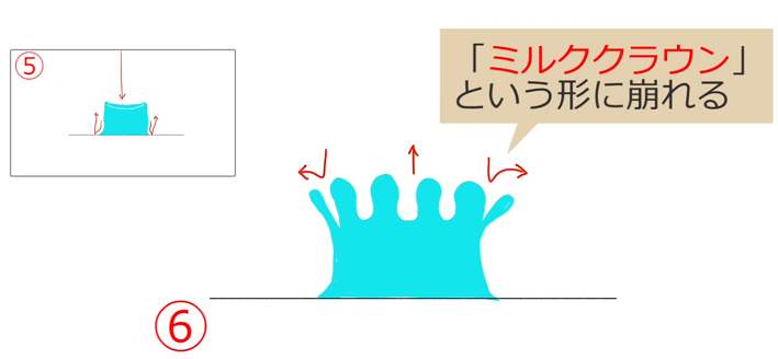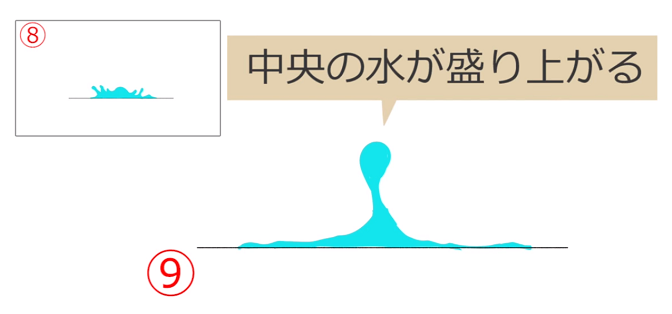 牛奶皇冠也瞬间成形后,就那样分散,在那个头空洞里聚集水,中央的水隆起。