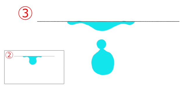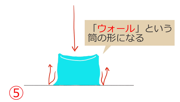 首先接触地面的水滴会变成筒一样的形状。把这个形状墙(墙)我叫你。