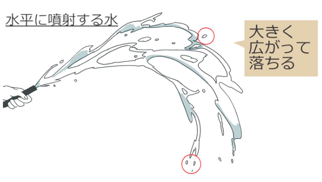 刚开始水会顺势向上喷出,但受到重力的影响,很快就会散落下来。