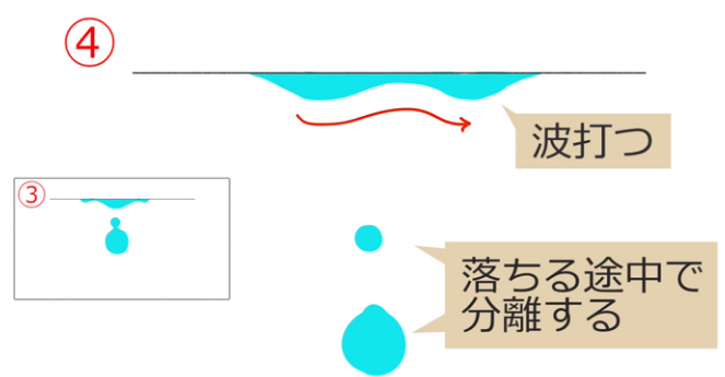 另一方面,远离的水滴会像雪人一样落下,带着加速度分离出来。