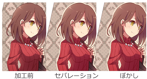 并且,活用了照相机的特征“周边光量下降”や“玉呆”的活用等,有各种各样的方法。