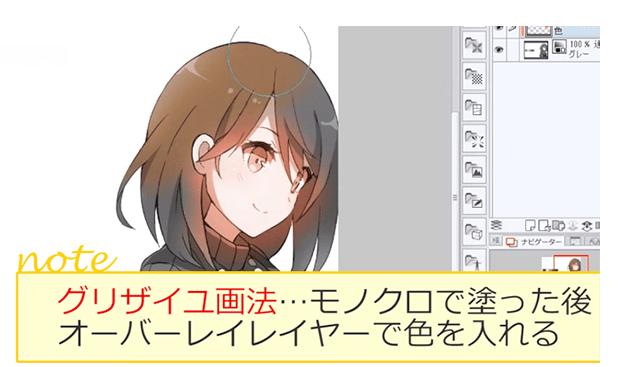 另外,作为方法之一,使用单色开始描绘,之后放置颜色的方式的“格里赛尔画法”,可以有效地进行亮度调整。