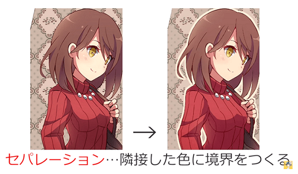 在背景上配置图案和多个小物件,或者在风景画得很细的情况下,人物容易同化,很难产生差异,所以使用“分离”。